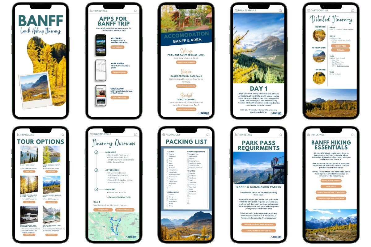This Ultimate Travel guide to Banff National Park written by locals. In this guide you'll find the most up-to-date advice to help you streamline your Banff trip planning. Add on a Banff itinerary to get it at a reduced price of $35.99 USD (each itinerary sells for $19.99 USD) Banff Guide + 7 Day Banff/Jasper Itinerary Banff Guide + 3 Day See it All Banff Itinerary Banff Guide + 10 Day Banff/Jasper Itinerary Banff Guide + 5 Day Hiking Itinerary Banff Guide + 4 Day Larch Hiking ItineraryNote: Price is in USD